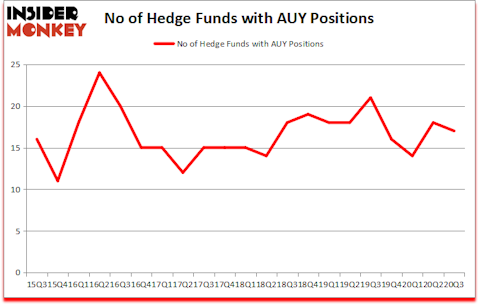 At the end of September, a total of 17 of the hedge funds tracked by Insider Monkey held long positions in this stock, a change of -6% from the previous quarter. The graph below displays the number of hedge funds with bullish position in AUY over the last 21 quarters. So, let’s check out which hedge funds were among the top holders of the stock and which hedge funds were making big moves.