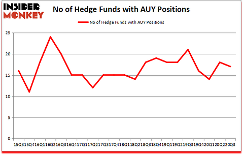 At the end of September, a total of 17 of the hedge funds tracked by Insider Monkey held long positions in this stock, a change of -6% from the previous quarter. The graph below displays the number of hedge funds with bullish position in AUY over the last 21 quarters. So, let’s check out which hedge funds were among the top holders of the stock and which hedge funds were making big moves.