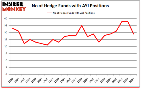 Is AYI stock a buy? Hedge funds were getting less optimistic. The number of long hedge fund bets shrunk by 9 in recent months. Acuity Brands, Inc. (NYSE:AYI) was in 29 hedge funds’ portfolios at the end of the fourth quarter of 2020. The all time high for this statistic is 38. Our calculations also showed that AYI isn’t among the 30 most popular stocks among hedge funds (click for Q4 rankings). There were 38 hedge funds in our database with AYI holdings at the end of September.