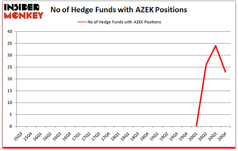 Is AZEK stock a buy? The AZEK Company Inc. (NYSE:AZEK) has experienced a decrease in hedge fund sentiment of late. The AZEK Company Inc. (NYSE:AZEK) was in 23 hedge funds’ portfolios at the end of the fourth quarter of 2020. The all time high for this statistic is 34. There were 34 hedge funds in our database with AZEK positions at the end of the third quarter. Our calculations also showed that AZEK isn’t among the 30 most popular stocks among hedge funds (click for Q4 rankings).
