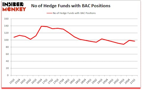 Bank of America Corporation (NYSE:BAC) has experienced a decrease in hedge fund sentiment lately. Bank of America Corporation (NYSE:BAC) was in 97 hedge funds’ portfolios at the end of the first quarter of 2021. The all time high for this statistic is 139. There were 99 hedge funds in our database with BAC positions at the end of the fourth quarter. Our calculations also showed that BAC ranked 24th among the 30 most popular stocks among hedge funds (click for Q1 rankings).