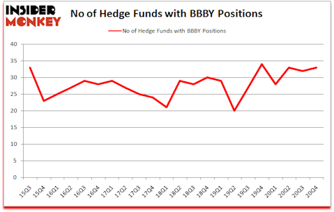 Is BBBY stock a buy? The smart money was getting more bullish. The number of long hedge fund bets improved by 1 lately. Bed Bath & Beyond Inc. (NASDAQ:BBBY) was in 33 hedge funds’ portfolios at the end of December. The all time high for this statistic is 34. Our calculations also showed that BBBY isn’t among the 30 most popular stocks among hedge funds (click for Q4 rankings).