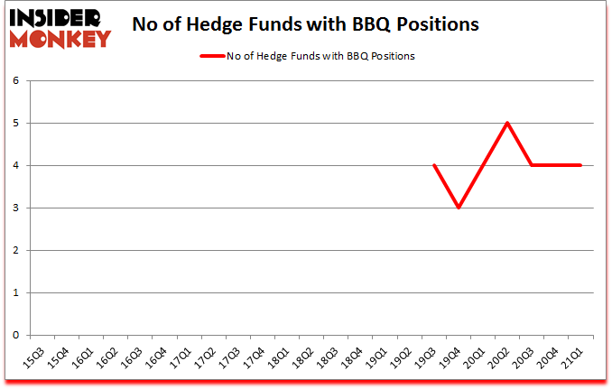 At Q1’s end, a total of 4 of the hedge funds tracked by Insider Monkey were bullish on this stock, a change of 0% from one quarter earlier. By comparison, 4 hedge funds held shares or bullish call options in BBQ a year ago. With hedge funds’ sentiment swirling, there exists a select group of key hedge fund managers who were upping their stakes significantly (or already accumulated large positions).