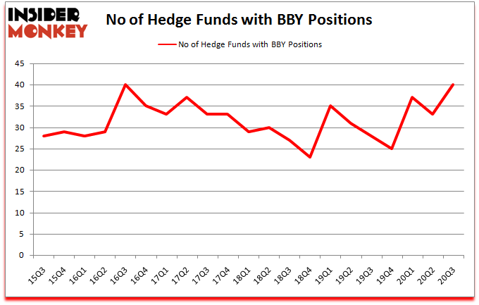 Is BBY a good stock to buy now? Best Buy Co., Inc. (NYSE:BBY) was in 40 hedge funds’ portfolios at the end of the third quarter of 2020. The all time high for this statistic is 40. This means the bullish number of hedge fund positions in this stock currently sits at its all time high. BBY shareholders have witnessed an increase in enthusiasm from smart money of late. There were 33 hedge funds in our database with BBY positions at the end of the second quarter. Our calculations also showed that BBY isn’t among the 30 most popular stocks among hedge funds (click for Q3 rankings and see the video for a quick look at the top 5 stocks).