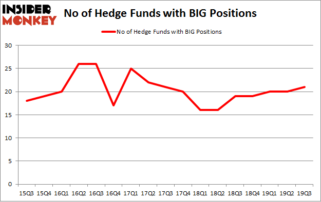 Heading into the fourth quarter of 2019, a total of 21 of the hedge funds tracked by Insider Monkey held long positions in this stock, a change of 5% from one quarter earlier. Below, you can check out the change in hedge fund sentiment towards BIG over the last 17 quarters. With the smart money’s capital changing hands, there exists an “upper tier” of notable hedge fund managers who were adding to their holdings meaningfully (or already accumulated large positions).