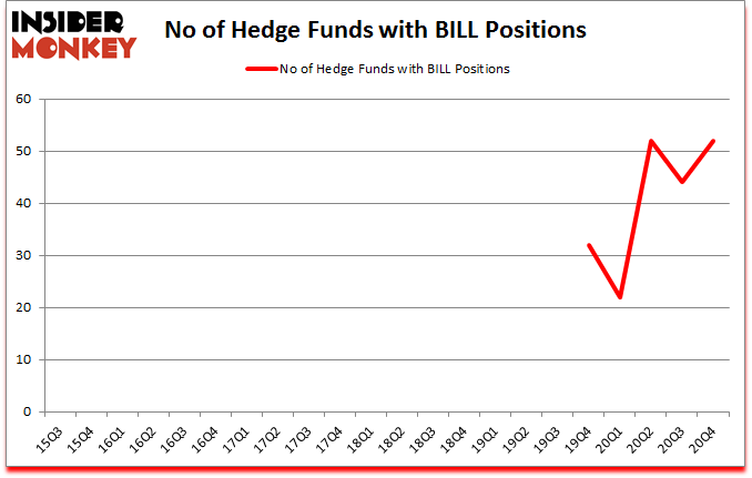 Is BILL stock a buy or sell? Bill.com Holdings, Inc. (NYSE:BILL) was in 52 hedge funds’ portfolios at the end of the fourth quarter of 2020. The all time high for this statistic is 52. This means the bullish number of hedge fund positions in this stock currently sits at its all time high. BILL shareholders have witnessed an increase in hedge fund interest lately. There were 44 hedge funds in our database with BILL holdings at the end of September. Our calculations also showed that BILL isn’t among the 30 most popular stocks among hedge funds (click for Q4 rankings).