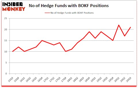 Is BOKF a good stock to buy now? Prominent investors were taking an optimistic view. The number of long hedge fund bets inched up by 4 in recent months. BOK Financial Corporation (NASDAQ:BOKF) was in 21 hedge funds’ portfolios at the end of September. The all time high for this statistic is 22. Our calculations also showed that BOKF isn’t among the 30 most popular stocks among hedge funds (click for Q3 rankings and see the video for a quick look at the top 5 stocks).