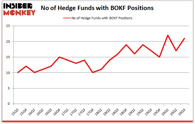 Is BOKF a good stock to buy now? Prominent investors were taking an optimistic view. The number of long hedge fund bets inched up by 4 in recent months. BOK Financial Corporation (NASDAQ:BOKF) was in 21 hedge funds’ portfolios at the end of September. The all time high for this statistic is 22. Our calculations also showed that BOKF isn’t among the 30 most popular stocks among hedge funds (click for Q3 rankings and see the video for a quick look at the top 5 stocks).
