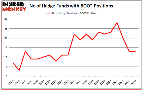 At Insider Monkey we scour multiple sources to uncover the next great investment idea. For example, Federal Reserve has been creating trillions of dollars electronically to keep the interest rates near zero. We believe this will lead to inflation and boost real estate prices. So, we recommended this real estate stock to our monthly premium newsletter subscribers. We go through lists like the 15 best blue chip stocks to pick the best large-cap stocks to buy. Even though we recommend positions in only a tiny fraction of the companies we analyze, we check out as many stocks as we can. We read hedge fund investor letters and listen to stock pitches at hedge fund conferences. You can subscribe to our free daily newsletter on our website. Now let’s review the recent hedge fund action surrounding Boot Barn Holdings Inc (NYSE:BOOT).