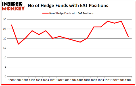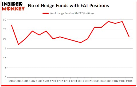 At Q4’s end, a total of 21 of the hedge funds tracked by Insider Monkey were bullish on this stock, a change of -28% from the third quarter of 2019. By comparison, 26 hedge funds held shares or bullish call options in EAT a year ago. So, let’s review which hedge funds were among the top holders of the stock and which hedge funds were making big moves.