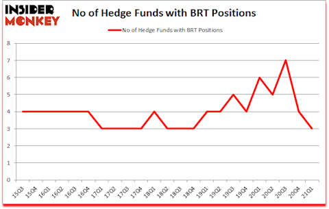 Is BRT a good stock to buy? The smart money was in a bearish mood. The number of long hedge fund bets were trimmed by 1 recently. BRT Apartments Corp (NYSE:BRT) was in 3 hedge funds’ portfolios at the end of March. The all time high for this statistic is 7. Our calculations also showed that BRT isn’t among the 30 most popular stocks among hedge funds (click for Q1 rankings). There were 4 hedge funds in our database with BRT holdings at the end of December.