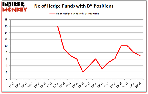 At the end of the third quarter, a total of 7 of the hedge funds tracked by Insider Monkey held long positions in this stock, a change of -13% from one quarter earlier. The graph below displays the number of hedge funds with bullish position in BY over the last 21 quarters. So, let’s review which hedge funds were among the top holders of the stock and which hedge funds were making big moves.