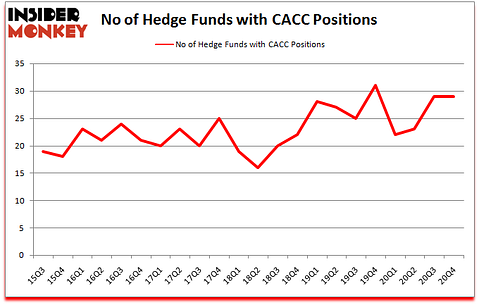 Heading into the first quarter of 2021, a total of 29 of the hedge funds tracked by Insider Monkey held long positions in this stock, a change of 0% from the previous quarter. On the other hand, there were a total of 31 hedge funds with a bullish position in CACC a year ago. With hedgies’ sentiment swirling, there exists a select group of noteworthy hedge fund managers who were boosting their stakes significantly (or already accumulated large positions).