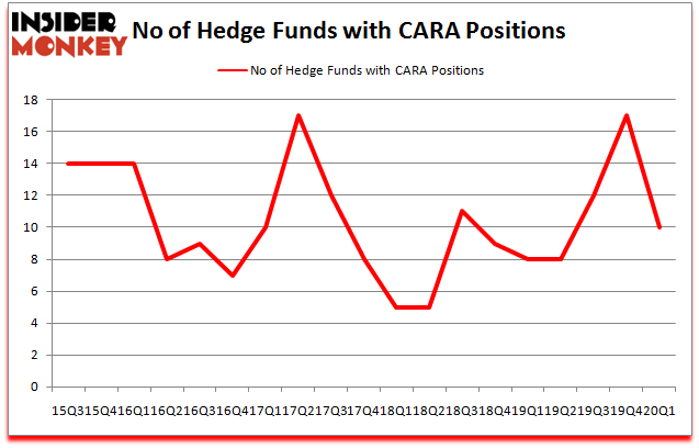 Heading into the second quarter of 2020, a total of 10 of the hedge funds tracked by Insider Monkey were bullish on this stock, a change of -41% from one quarter earlier. Below, you can check out the change in hedge fund sentiment towards CARA over the last 18 quarters. With the smart money’s positions undergoing their usual ebb and flow, there exists an “upper tier” of key hedge fund managers who were adding to their stakes substantially (or already accumulated large positions).