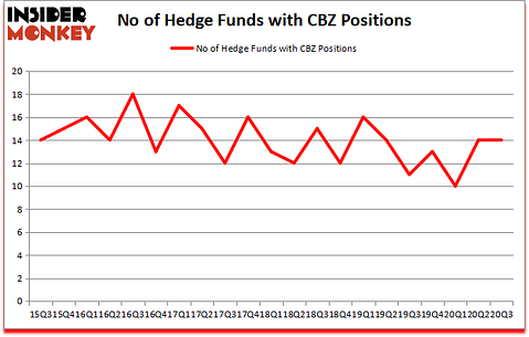 At Q3’s end, a total of 14 of the hedge funds tracked by Insider Monkey were bullish on this stock, a change of 0% from the previous quarter. The graph below displays the number of hedge funds with bullish position in CBZ over the last 21 quarters. With hedge funds’ sentiment swirling, there exists a few noteworthy hedge fund managers who were upping their holdings substantially (or already accumulated large positions).