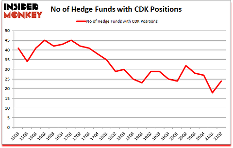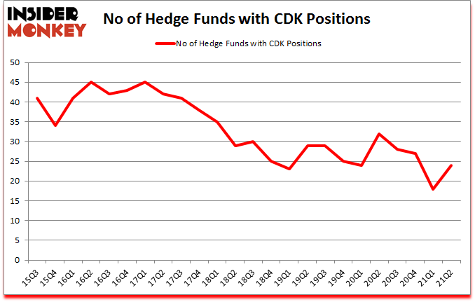 CDK Global Inc (NASDAQ:CDK) shareholders have witnessed an increase in enthusiasm from smart money of late. CDK Global Inc (NASDAQ:CDK) was in 24 hedge funds’ portfolios at the end of the second quarter of 2021. The all time high for this statistic is 45. There were 18 hedge funds in our database with CDK positions at the end of the first quarter. Our calculations also showed that CDK isn’t among the 30 most popular stocks among hedge funds (click for Q2 rankings).