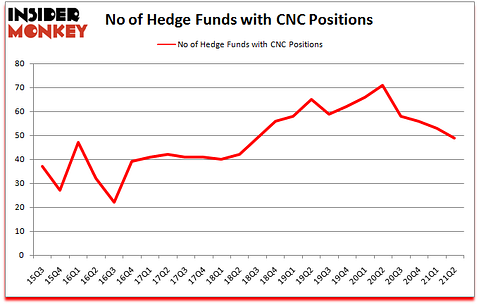Is CNC a good stock to buy? Centene Corporation (NYSE:CNC) has experienced a decrease in hedge fund interest lately. Centene Corporation (NYSE:CNC) was in 49 hedge funds’ portfolios at the end of the second quarter of 2021. The all time high for this statistic is 71. There were 53 hedge funds in our database with CNC positions at the end of the first quarter. Our calculations also showed that CNC isn’t among the 30 most popular stocks among hedge funds (click for Q2 rankings).