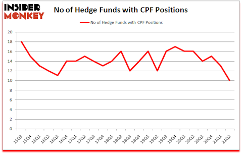 At the end of June, a total of 10 of the hedge funds tracked by Insider Monkey were bullish on this stock, a change of -23% from one quarter earlier. Below, you can check out the change in hedge fund sentiment towards CPF over the last 24 quarters. So, let’s examine which hedge funds were among the top holders of the stock and which hedge funds were making big moves.