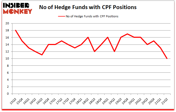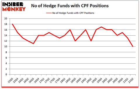 At the end of June, a total of 10 of the hedge funds tracked by Insider Monkey were bullish on this stock, a change of -23% from one quarter earlier. Below, you can check out the change in hedge fund sentiment towards CPF over the last 24 quarters. So, let’s examine which hedge funds were among the top holders of the stock and which hedge funds were making big moves.