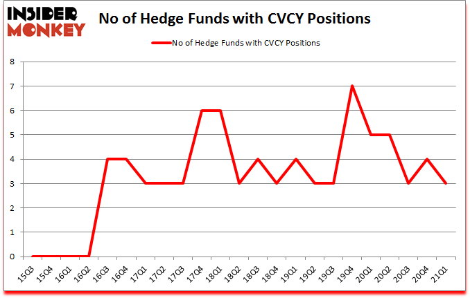 At the end of the first quarter, a total of 3 of the hedge funds tracked by Insider Monkey were bullish on this stock, a change of -25% from the fourth quarter of 2020. Below, you can check out the change in hedge fund sentiment towards CVCY over the last 23 quarters. So, let’s review which hedge funds were among the top holders of the stock and which hedge funds were making big moves.