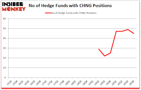 Is CHNG stock a buy or sell? Change Healthcare Inc. (NASDAQ:CHNG) was in 45 hedge funds’ portfolios at the end of December. The all time high for this statistic is 49. CHNG has experienced a decrease in hedge fund sentiment recently. There were 49 hedge funds in our database with CHNG holdings at the end of September. Our calculations also showed that CHNG isn’t among the 30 most popular stocks among hedge funds (click for Q4 rankings).