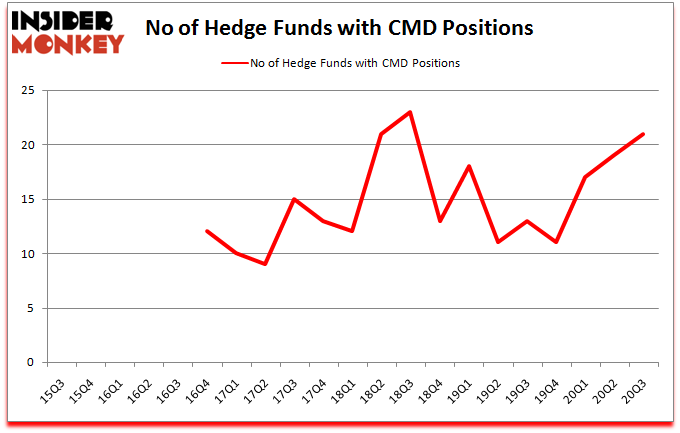 At Q3’s end, a total of 21 of the hedge funds tracked by Insider Monkey held long positions in this stock, a change of 11% from the previous quarter. The graph below displays the number of hedge funds with bullish position in CMD over the last 21 quarters. So, let’s see which hedge funds were among the top holders of the stock and which hedge funds were making big moves.