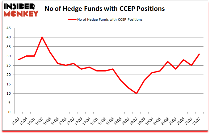 Is CCEP a good stock to buy? Coca-Cola Europacific Partners PLC (NASDAQ:CCEP) was in 31 hedge funds’ portfolios at the end of June. The all time high for this statistic is 40. CCEP investors should be aware of an increase in hedge fund interest in recent months. There were 25 hedge funds in our database with CCEP holdings at the end of March. Our calculations also showed that CCEP isn’t among the 30 most popular stocks among hedge funds (click for Q2 rankings).