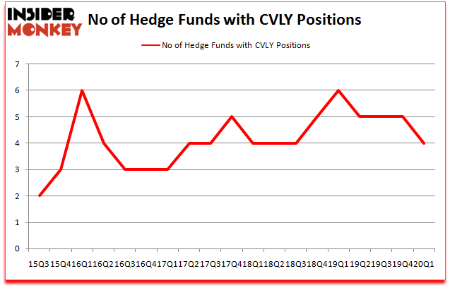 At Q1’s end, a total of 4 of the hedge funds tracked by Insider Monkey were long this stock, a change of -20% from the previous quarter. By comparison, 6 hedge funds held shares or bullish call options in CVLY a year ago. So, let’s find out which hedge funds were among the top holders of the stock and which hedge funds were making big moves.