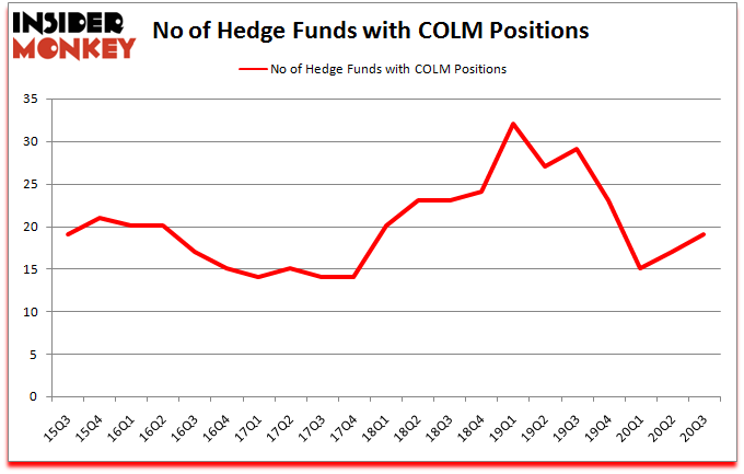 At the end of the third quarter, a total of 19 of the hedge funds tracked by Insider Monkey were long this stock, a change of 12% from the second quarter of 2020. Below, you can check out the change in hedge fund sentiment towards COLM over the last 21 quarters. So, let’s check out which hedge funds were among the top holders of the stock and which hedge funds were making big moves.
