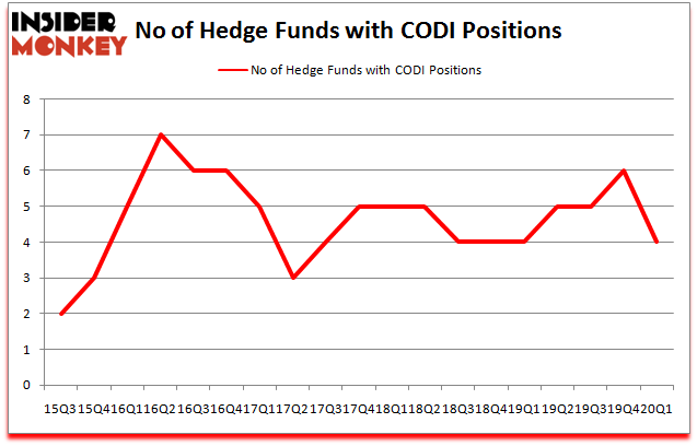 At Q1’s end, a total of 4 of the hedge funds tracked by Insider Monkey were bullish on this stock, a change of -33% from the previous quarter. By comparison, 4 hedge funds held shares or bullish call options in CODI a year ago. With hedge funds’ sentiment swirling, there exists a few noteworthy hedge fund managers who were boosting their holdings meaningfully (or already accumulated large positions).
