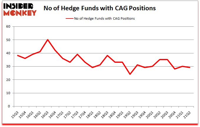 At the end of the second quarter, a total of 29 of the hedge funds tracked by Insider Monkey were bullish on this stock, a change of -3% from one quarter earlier. By comparison, 35 hedge funds held shares or bullish call options in CAG a year ago. So, let’s see which hedge funds were among the top holders of the stock and which hedge funds were making big moves.