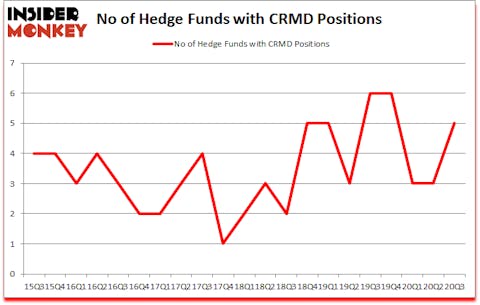 At third quarter’s end, a total of 5 of the hedge funds tracked by Insider Monkey were bullish on this stock, a change of 67% from one quarter earlier. On the other hand, there were a total of 6 hedge funds with a bullish position in CRMD a year ago. So, let’s review which hedge funds were among the top holders of the stock and which hedge funds were making big moves.