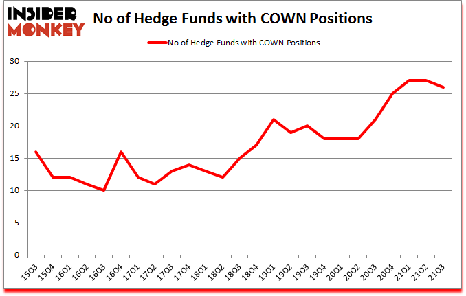 At Q3’s end, a total of 26 of the hedge funds tracked by Insider Monkey held long positions in this stock, a change of -4% from the previous quarter. Below, you can check out the change in hedge fund sentiment towards COWN over the last 25 quarters. So, let’s examine which hedge funds were among the top holders of the stock and which hedge funds were making big moves.