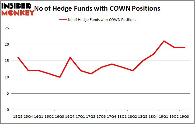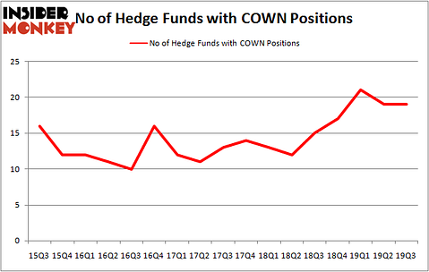 At the end of the third quarter, a total of 19 of the hedge funds tracked by Insider Monkey were bullish on this stock, a change of 0% from one quarter earlier. On the other hand, there were a total of 15 hedge funds with a bullish position in COWN a year ago. So, let’s review which hedge funds were among the top holders of the stock and which hedge funds were making big moves.