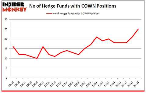 Heading into the first quarter of 2021, a total of 25 of the hedge funds tracked by Insider Monkey were bullish on this stock, a change of 19% from one quarter earlier. On the other hand, there were a total of 18 hedge funds with a bullish position in COWN a year ago. With hedgies’ sentiment swirling, there exists an “upper tier” of notable hedge fund managers who were adding to their holdings meaningfully (or already accumulated large positions).