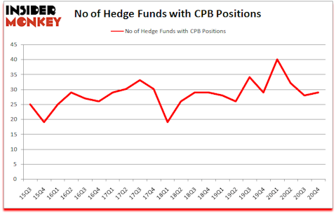 Is CPB stock a buy? Hedge funds were in an optimistic mood. The number of bullish hedge fund positions increased by 1 recently. Campbell Soup Company (NYSE:CPB) was in 29 hedge funds’ portfolios at the end of December. The all time high for this statistic is 40. Our calculations also showed that CPB isn’t among the 30 most popular stocks among hedge funds (click for Q4 rankings).