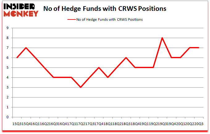 At the end of the third quarter, a total of 7 of the hedge funds tracked by Insider Monkey were bullish on this stock, a change of 0% from one quarter earlier. Below, you can check out the change in hedge fund sentiment towards CRWS over the last 21 quarters. With hedgies’ sentiment swirling, there exists a select group of key hedge fund managers who were adding to their stakes substantially (or already accumulated large positions).