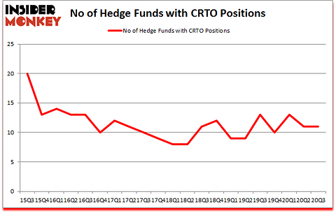 At Q3’s end, a total of 11 of the hedge funds tracked by Insider Monkey were bullish on this stock, a change of 0% from the previous quarter. Below, you can check out the change in hedge fund sentiment towards CRTO over the last 21 quarters. So, let’s check out which hedge funds were among the top holders of the stock and which hedge funds were making big moves.