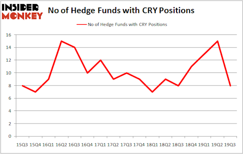 At the end of the third quarter, a total of 8 of the hedge funds tracked by Insider Monkey held long positions in this stock, a change of -47% from one quarter earlier. On the other hand, there were a total of 8 hedge funds with a bullish position in CRY a year ago. With hedgies’ sentiment swirling, there exists an “upper tier” of noteworthy hedge fund managers who were increasing their stakes considerably (or already accumulated large positions).