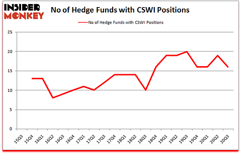 Is CSWI a good stock to buy now? CSW Industrials, Inc. (NASDAQ:CSWI) was in 16 hedge funds’ portfolios at the end of the third quarter of 2020. The all time high for this statistic is 20. CSWI investors should pay attention to a decrease in hedge fund sentiment of late. There were 19 hedge funds in our database with CSWI positions at the end of the second quarter. Our calculations also showed that CSWI isn’t among the 30 most popular stocks among hedge funds (click for Q3 rankings and see the video for a quick look at the top 5 stocks).