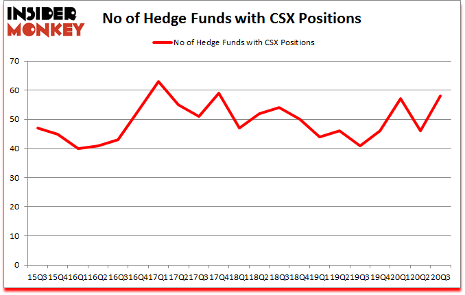 Is CSX a good stock to buy now? CSX Corporation (NASDAQ:CSX) has seen an increase in support from the world’s most elite money managers recently. CSX Corporation (NASDAQ:CSX) was in 58 hedge funds’ portfolios at the end of the third quarter of 2020. The all time high for this statistics is 63. There were 46 hedge funds in our database with CSX positions at the end of the second quarter. Our calculations also showed that CSX isn’t among the 30 most popular stocks among hedge funds (click for Q3 rankings and see the video for a quick look at the top 5 stocks).