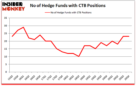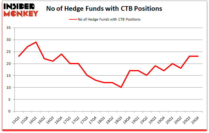 Heading into the first quarter of 2021, a total of 23 of the hedge funds tracked by Insider Monkey held long positions in this stock, a change of 0% from one quarter earlier. Below, you can check out the change in hedge fund sentiment towards CTB over the last 22 quarters. With hedge funds’ sentiment swirling, there exists a few notable hedge fund managers who were adding to their stakes significantly (or already accumulated large positions).
