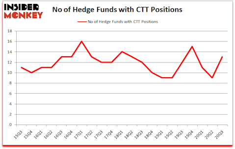 At third quarter’s end, a total of 13 of the hedge funds tracked by Insider Monkey held long positions in this stock, a change of 44% from one quarter earlier. Below, you can check out the change in hedge fund sentiment towards CTT over the last 21 quarters. So, let’s find out which hedge funds were among the top holders of the stock and which hedge funds were making big moves.