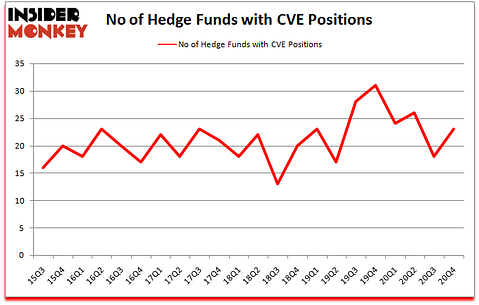 At the end of December, a total of 23 of the hedge funds tracked by Insider Monkey held long positions in this stock, a change of 28% from one quarter earlier. By comparison, 31 hedge funds held shares or bullish call options in CVE a year ago. So, let’s find out which hedge funds were among the top holders of the stock and which hedge funds were making big moves.