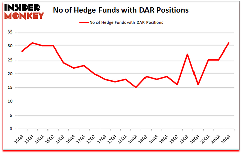 Is DAR a good stock to buy now? Darling Ingredients Inc. (NYSE:DAR) has experienced an increase in hedge fund sentiment lately. Darling Ingredients Inc. (NYSE:DAR) was in 31 hedge funds’ portfolios at the end of September. The all time high for this statistic is 31. This means the bullish number of hedge fund positions in this stock currently sits at its all time high. There were 25 hedge funds in our database with DAR positions at the end of the second quarter. Our calculations also showed that DAR isn’t among the 30 most popular stocks among hedge funds (click for Q3 rankings and see the video for a quick look at the top 5 stocks).