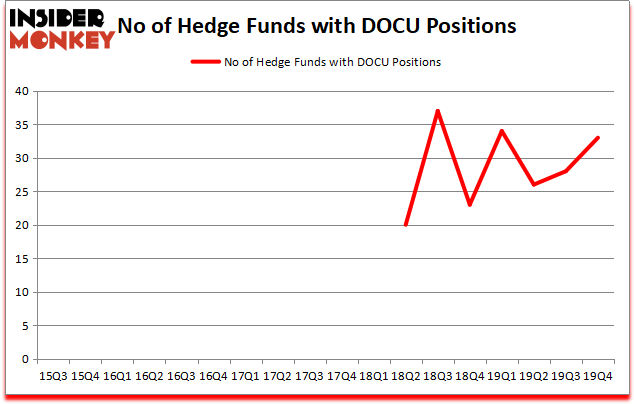 At Q4’s end, a total of 33 of the hedge funds tracked by Insider Monkey held long positions in this stock, a change of 18% from one quarter earlier. Below, you can check out the change in hedge fund sentiment towards DOCU over the last 18 quarters. So, let’s find out which hedge funds were among the top holders of the stock and which hedge funds were making big moves.