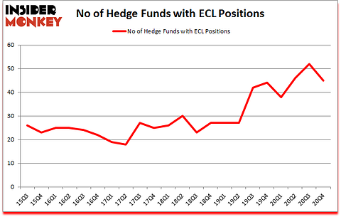 Is ECL stock a buy or sell? Ecolab Inc. (NYSE:ECL) was in 45 hedge funds’ portfolios at the end of the fourth quarter of 2020. The all time high for this statistic is 52. ECL has experienced a decrease in support from the world’s most elite money managers in recent months. There were 52 hedge funds in our database with ECL positions at the end of the third quarter. Our calculations also showed that ECL isn’t among the 30 most popular stocks among hedge funds (click for Q4 rankings).