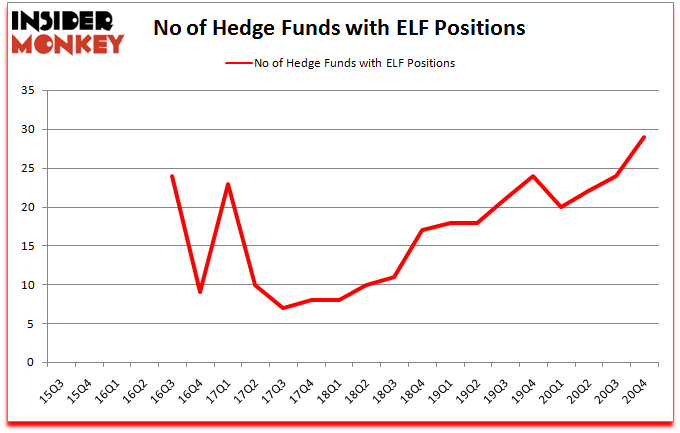 Heading into the first quarter of 2021, a total of 29 of the hedge funds tracked by Insider Monkey held long positions in this stock, a change of 21% from the previous quarter. The graph below displays the number of hedge funds with bullish position in ELF over the last 22 quarters. With hedge funds’ sentiment swirling, there exists an “upper tier” of key hedge fund managers who were increasing their stakes considerably (or already accumulated large positions).