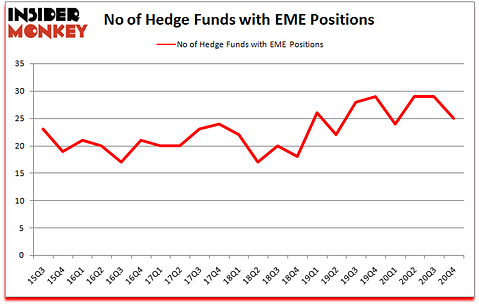 Is EME stock a buy? Emcor Group Inc (NYSE:EME) has seen a decrease in enthusiasm from smart money in recent months. Emcor Group Inc (NYSE:EME) was in 25 hedge funds’ portfolios at the end of December. The all time high for this statistic is 29. Our calculations also showed that EME isn’t among the 30 most popular stocks among hedge funds (click for Q4 rankings).