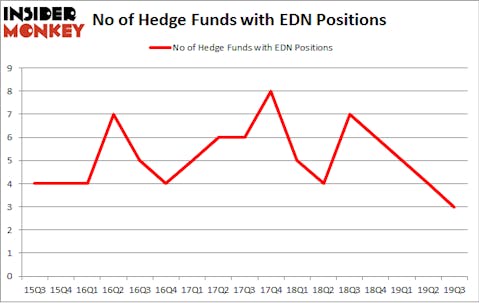 Heading into the fourth quarter of 2019, a total of 3 of the hedge funds tracked by Insider Monkey held long positions in this stock, a change of -25% from the previous quarter. By comparison, 7 hedge funds held shares or bullish call options in EDN a year ago. With hedgies’ sentiment swirling, there exists a few key hedge fund managers who were adding to their holdings considerably (or already accumulated large positions).